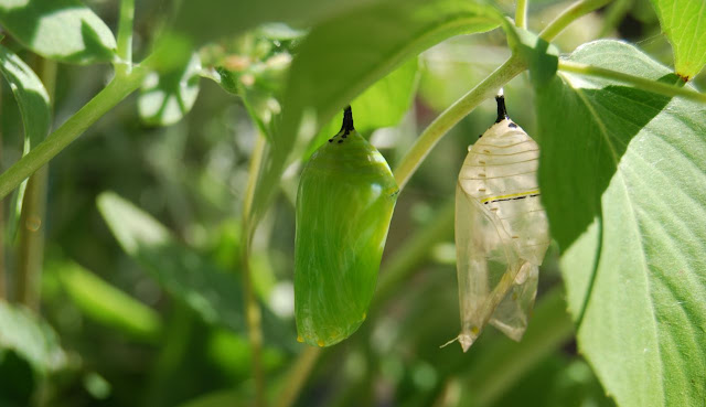 At first a bit of it's old form is seen, though yellow and milkweed green with template of wings.